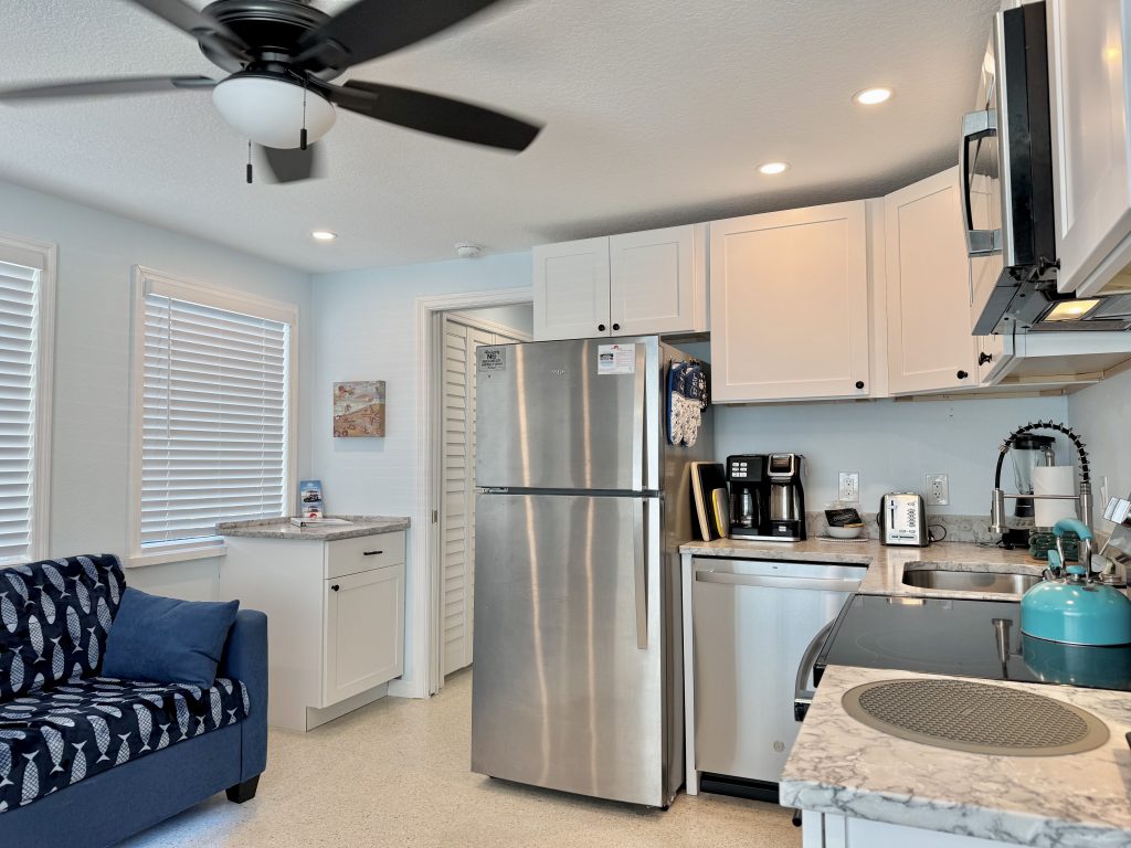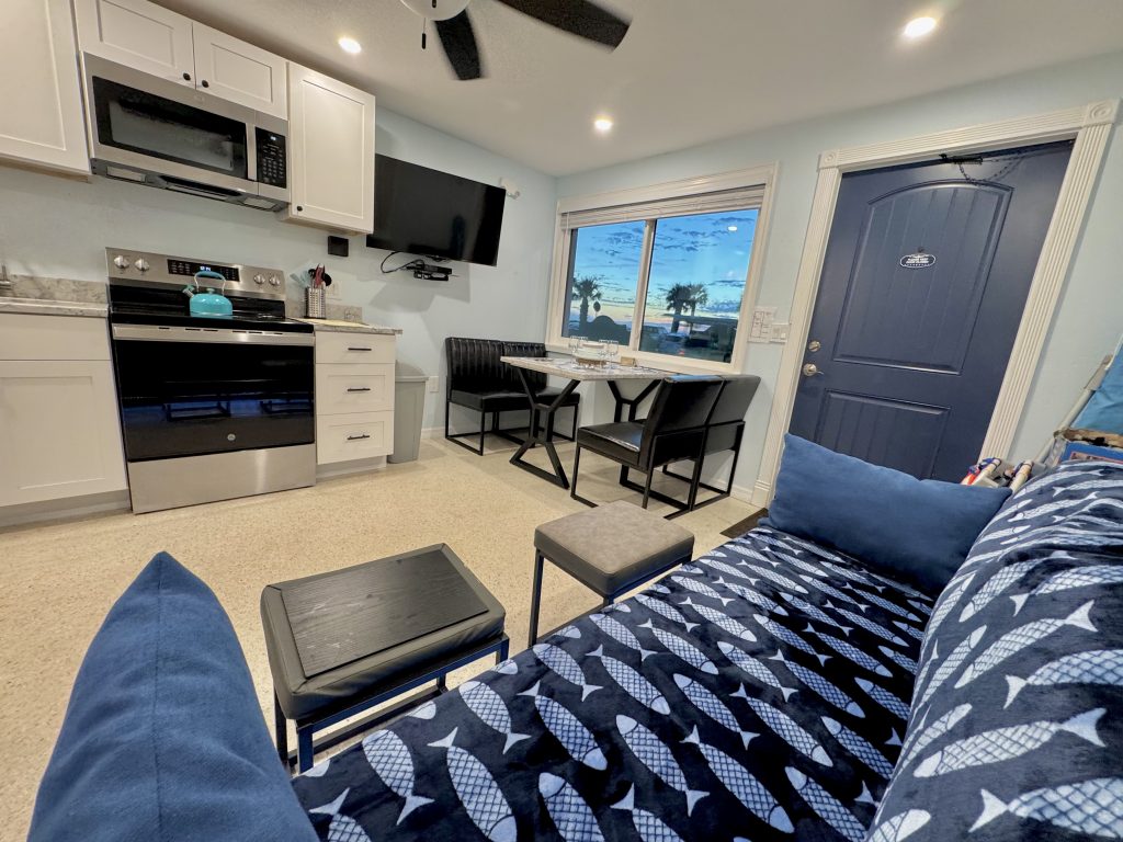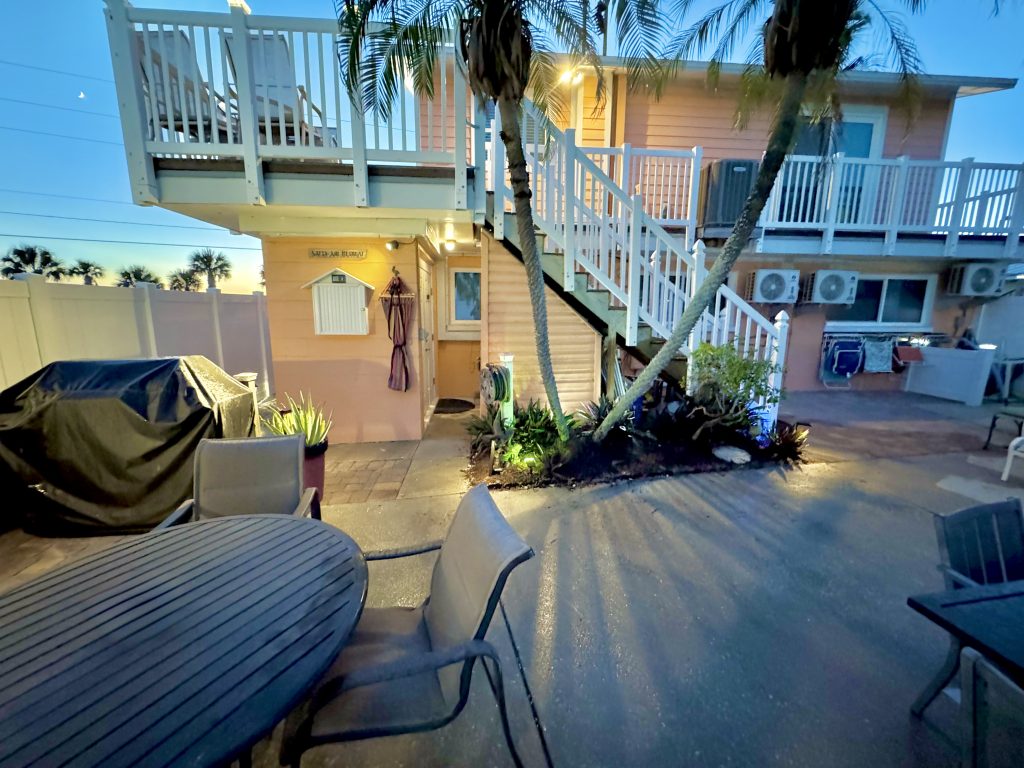 The kitchen with quality appliances & utensils including blender & wine glasses provided, wall mounted hair dryers (bedroom vanity), Iron & small board, large beach towels, 2 premium beach chairs (plus: more in patio storage), 1 beach buggy, 1 quality large umbrella & 6-pack cooler, HD Flat screen LED TV’s with free cable channels (two 43 inch TV’s), quality queen sofa sleeper, ceiling fans in the sleeping areas, ground level enclosed area with Stainless Steel large gas grill plus side searing cooker & LED spot / grill light (wall switch), sun bathing area shared enclosed patio area, 2 beach showers & foot washes & hose, 1 front door parking space for 1 bedroom villas each with addition day time only public parking a 1/2 block away for Weddings or visitors. Other 1-2 bedroom villas for rent (if/when available).